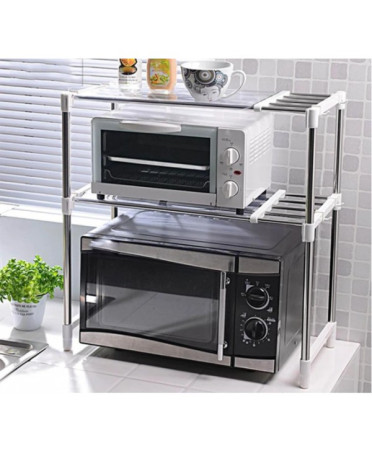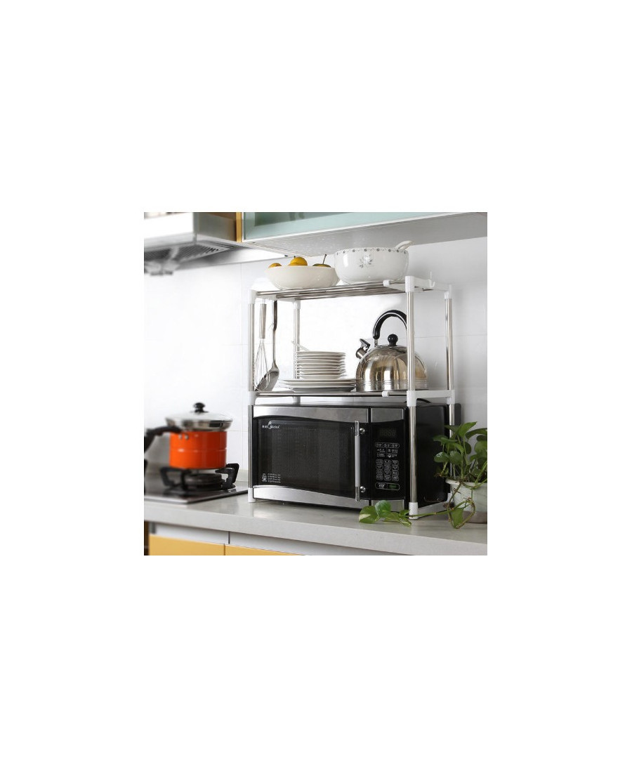 Four à micro-ondes multifonctionnel Étagère de rangement en acier inoxydable Réglable Four à micro-ondes réglable Étagère de rangement de cuisine en acier inoxydable à 3 niveaux Étagère de rangement extensible en chrome à 2 étagères pour four à micro-ondes avec crochets de suspension