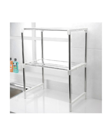 Caractéristiques : 100 % neuf et de haute qualité 2 étagères en acier inoxydable 8 crochets de suspension Design contemporain Solide et durable Matériau : ABS + acier Dimensions : (L) 48,5-88,5 * (l) 30,5 * (H) 61,5 cm